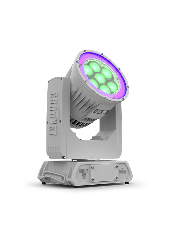 Fully featured RGBW LED IP 66 rated yoke wash fixture with zoom and RGB LED ring