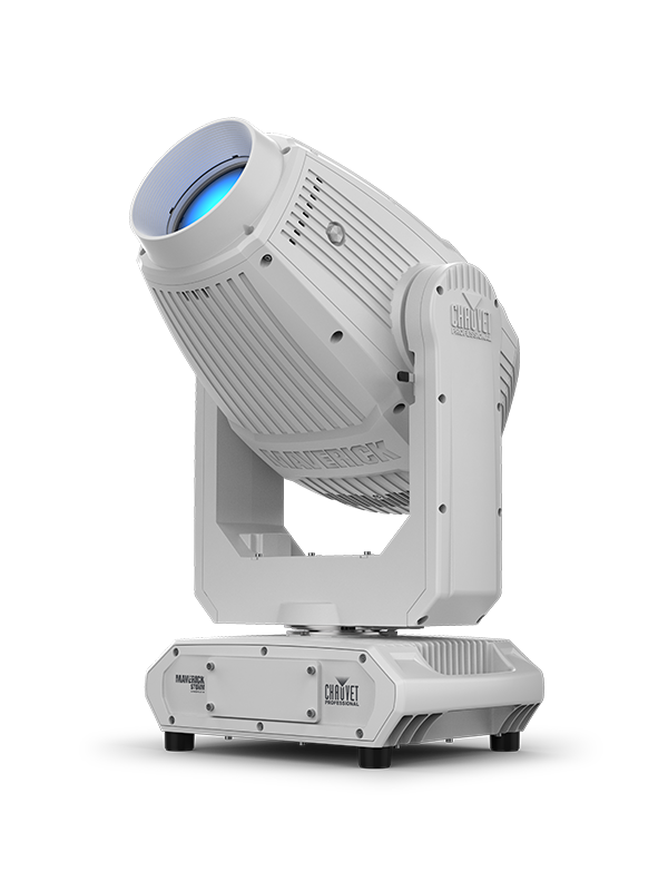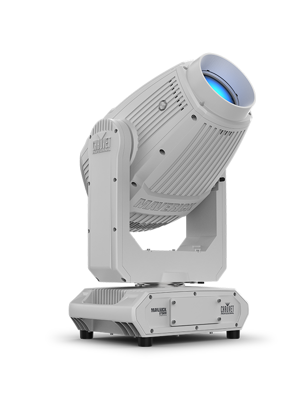Fully featured, compact and lightweight IP66 580 W LED yoke profile fixture including CMY + CTO color mixing, a 4-blade framing shutter system with rotation, a color wheel, 10:1 zoom, a 5-facet prism wheel, 1 rotating and 1 static gobo wheel, integrated sun shield