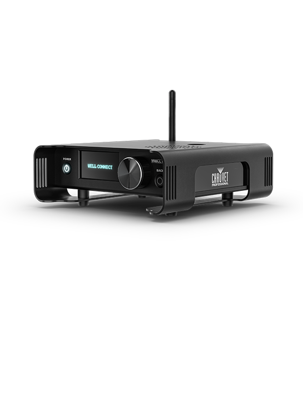 Wireless Control Hub: Compact, battery-powered Bluetooth and W-DMX/CRMX transceiver designed to control WELL fixtures or any DMX lighting system.